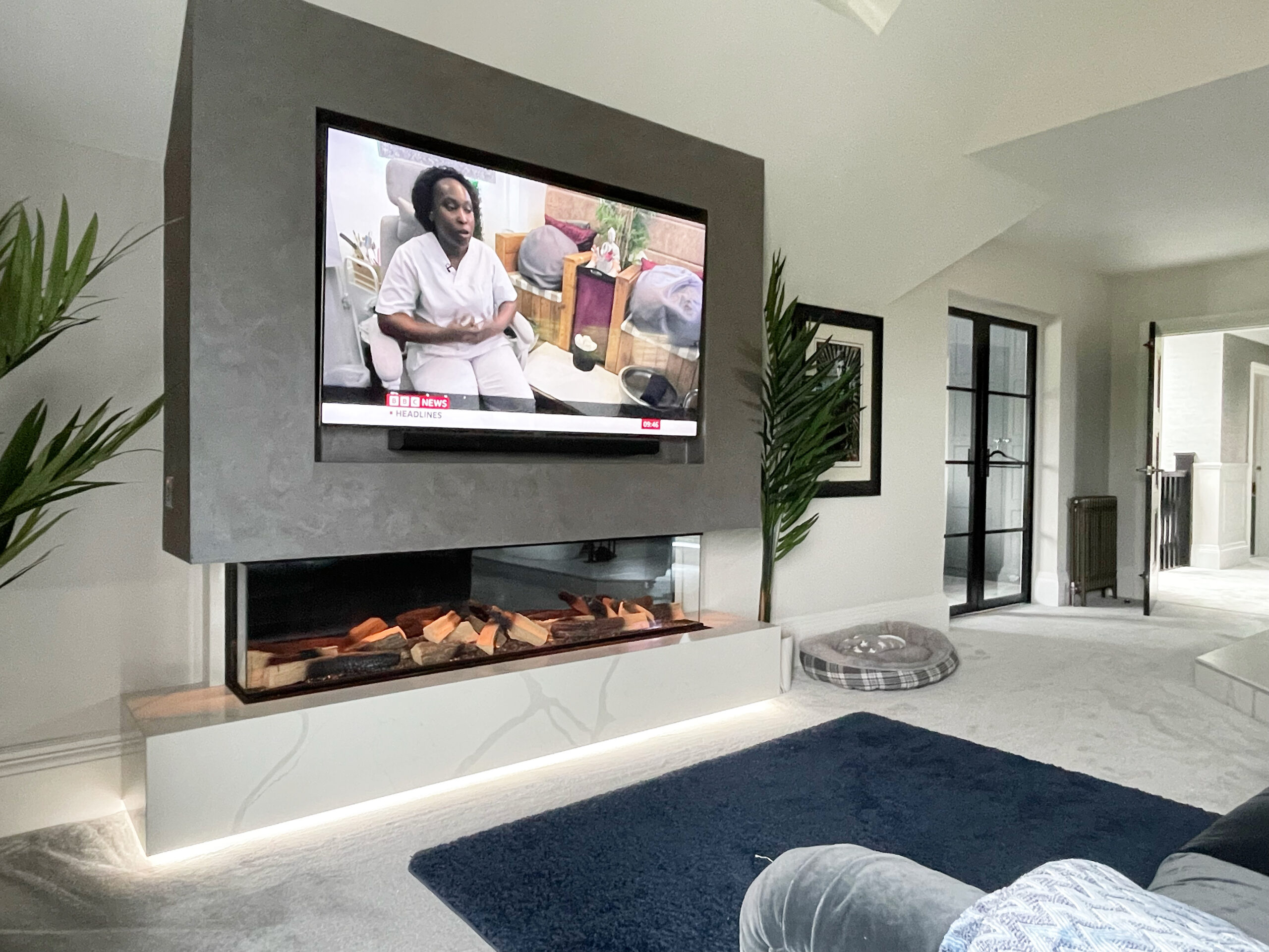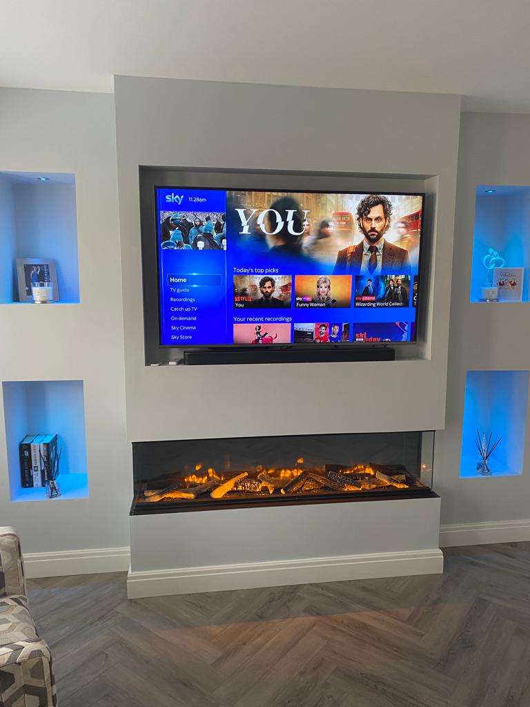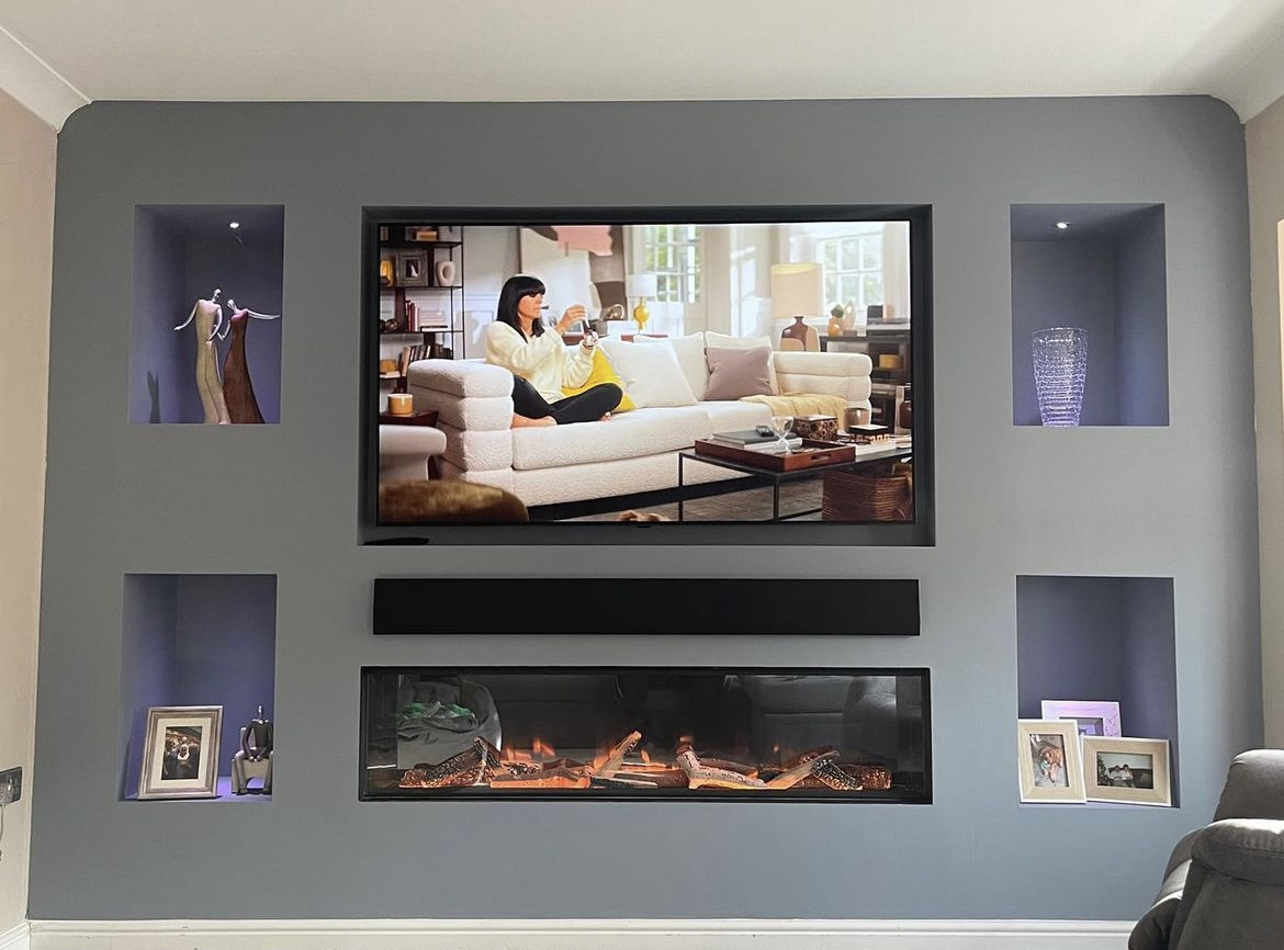 At ELB Fireplaces, we provide complete media wall installations from start to finish. We handle every trade involved, including joinery, plastering, electrics, lighting and the full supply and installation of media walls with high quality integrated fires.