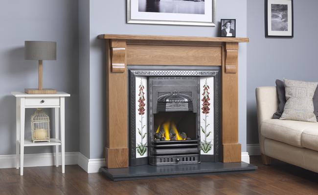 The Eden pairs perfectly with tiled panels, allowing you to personalise the fireplace to suit your décor. Shown with the hand-painted Foxglove tile set in burgundy and ivory, the design offers a traditional floral pattern with rich colouring and a mirror-image layout on each side. This makes the Eden a striking focal point in any period-inspired living room or traditional property.